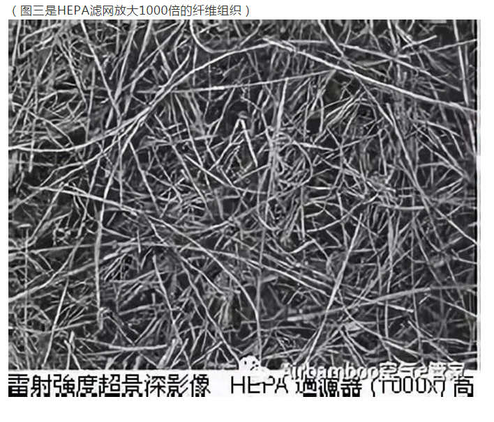 (圖三是HEPA濾網放大1000倍的纖維組織)