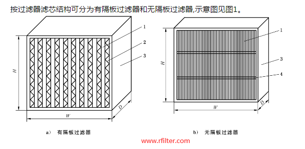 按過濾器濾芯結構可分為有隔板過濾器和無隔板過濾器,示意圖見圖1。
