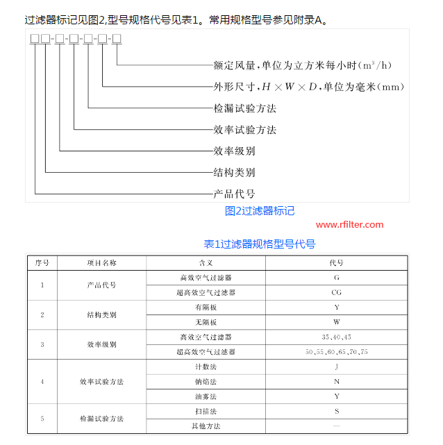 過濾器標記見圖2,型號規格代號見表1。常用規格型號參見附錄A。