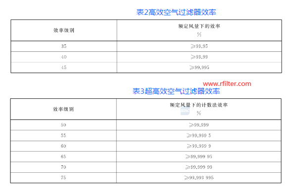 按GB/T 6165規定的方法檢測過濾器過濾效率,高效空氣過濾器可分為35、40、45三類。